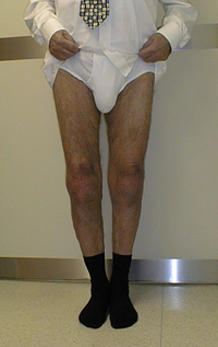 Auch geht die fortschreitende Arthrose nicht selten mit einer erheblichen Achsfehlstellung (O-Beine, X-Beine) der Beine einher.