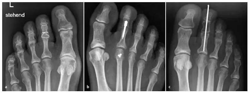 Eine operative Therapie von Kleinzehen Fehlstellungen sollte geprüft werden, wenn die o.g. konservativen Maßnahmen zu keinem entsprechenden Therapieerfolg geführt haben. Bei fortgeschrittenen Deformitäten und ausgeprägter Klinik ist ein operatives Vorgehen frühzeitig zu erwägen.