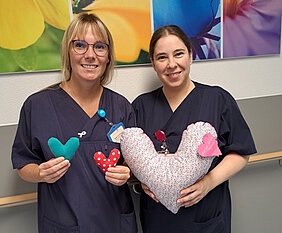 Sie sollen für Entlastung der schmerzenden Stellen nach einer Brustkrebsoperation sorgen und gleichzeitig ein Zeichen der Solidarität sein: Herzkissen für Frauen, die an Brustkrebs erkrankt sind. „Außerdem kommen die Kissen häufig auch als Seelentröster zum Einsatz“, erzählt Breast Care Nurse Melanie Honrath. Die Kissen werden regelmäßig im Rahmen einer Nähaktion von ehemaligen Patientinnen, Interessierten und Mitarbeiterinnen des Prosper-Hospitals genäht.